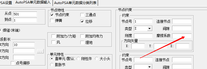 3.直接在管道应力分析软件AutoPSA中修改每个支吊点摩擦系数